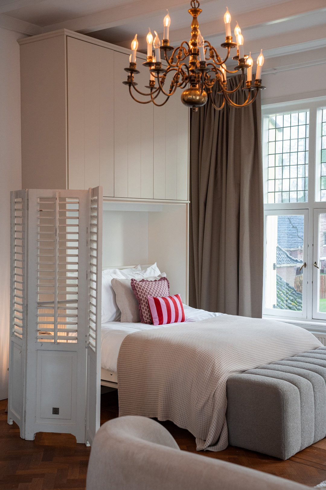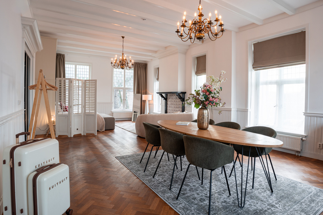 The Superior Suite is our authentic suite with a generous size of 60 square metres. The Council Chamber offers guests a combination of comfort and style. The suite is tastefully decorated in a classic style and features large windows overlooking Dorpsstraat and the historic village church. The private bathroom is a true oasis and includes a double shower, a luxurious bathtub, and is equipped with a toilet, hairdryer, and toiletries.