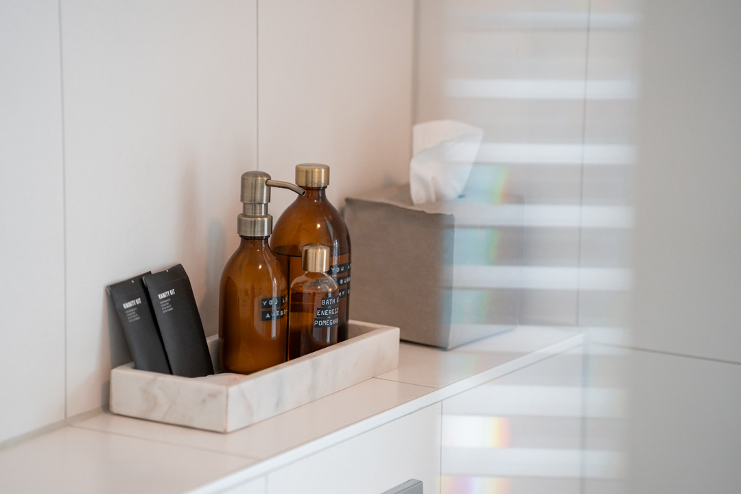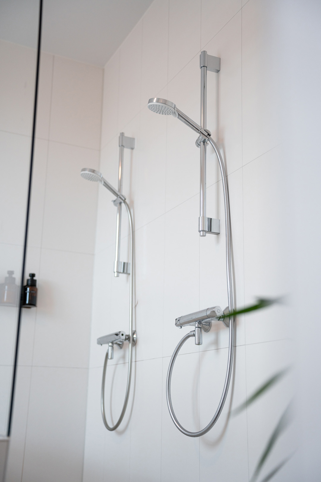 - Private bathroom with double shower and bathtub